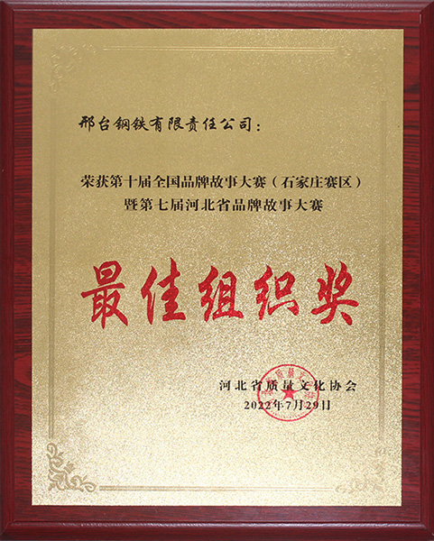 Xingtai Steel was invited to take part in National 10th Brand Story Compitition (Hebei Division). Four essays, 2 micro films, a speech and a shrot video won the prize. Xingtai Steel won the "Best Organization Award in National 10th Brand Story Compitition (Hebei Division)"