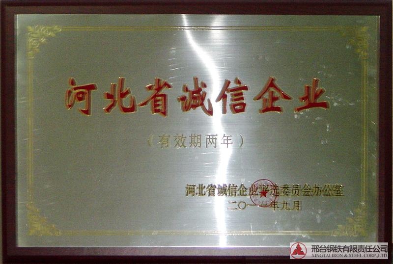 2011年9月,邢鋼被評選為“河北省誠信企業(yè)”。