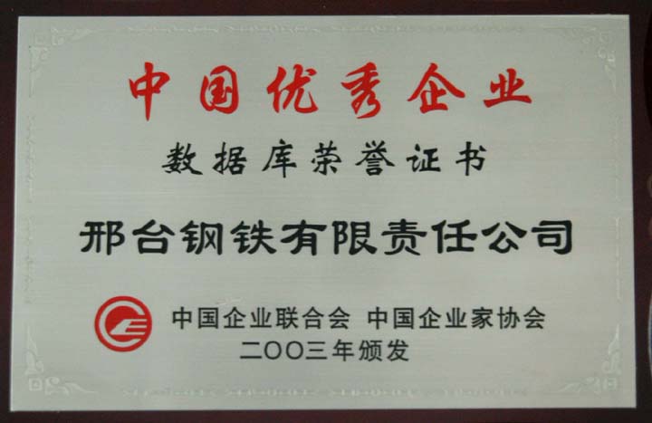 2004年,邢鋼獲得由CECA國家信息化測評(píng)中心頒發(fā)的“中國企業(yè)信息化500強(qiáng)” 榮譽(yù)稱號(hào)。