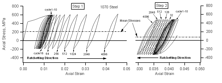 材料受到拉伸或壓縮時,如果力大于材料的屈服強度,那么材料就會發(fā)生塑性變形。外力卸載并反向加載,材料先是沿彈性線恢復繼而發(fā)生反向變形,如果反向加載的載荷小于初始加載的載荷,那么材料反向變形大小就會小于初始變形,進而產生了殘余應變。如此反復,這就是材料中的棘輪效應。簡單點說,就是材料在非對稱應力循環(huán)載荷下將會產生塑性變形循環(huán)累積現(xiàn)象,稱之為棘輪效應。
