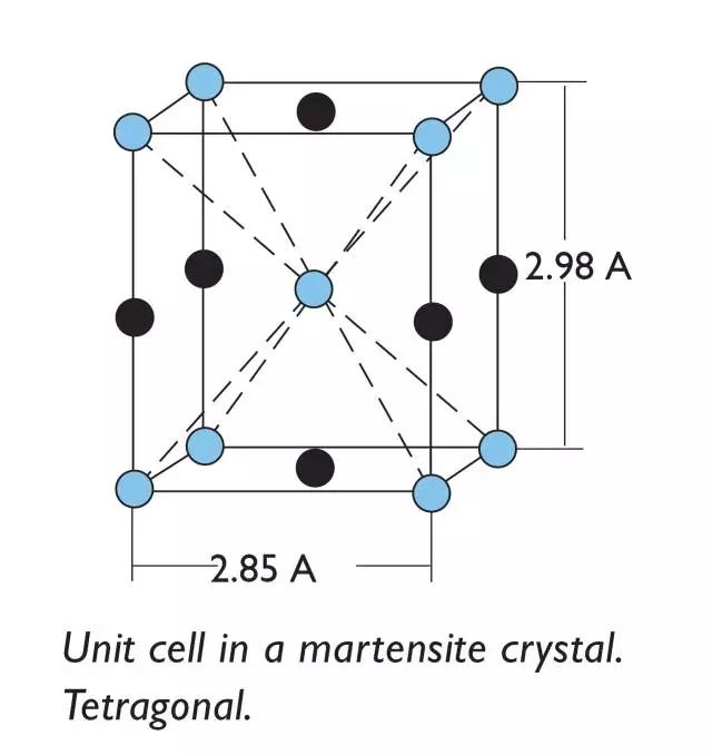 如果鋼在硬化過程中足夠快速地淬火,則碳原子沒有時間自己重新定位以允許鐵素體從奧氏體中轉(zhuǎn)變,例如在退火中。相反,它們被固定在某個位置上,使它們真正沒有足夠空間被容納,結(jié)果是導致更高的微應力促使硬度增加。