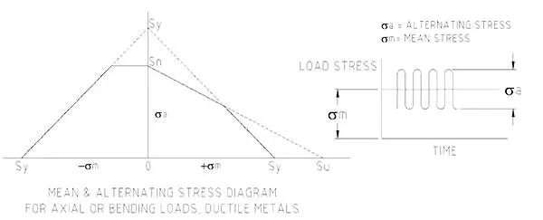 知道一部分將受到波動負載需要設計師設計的部分,為該條件。使用已知的極限拉伸應力和屈服應力(金屬首先開始永久變形的應力,約80~90%的拉伸應力),設計者構造一個應力限制包絡,如圖2所示。然后設計該部件以使施加到其上的循環(huán)載荷為控制在包絡內(nèi)的應力。