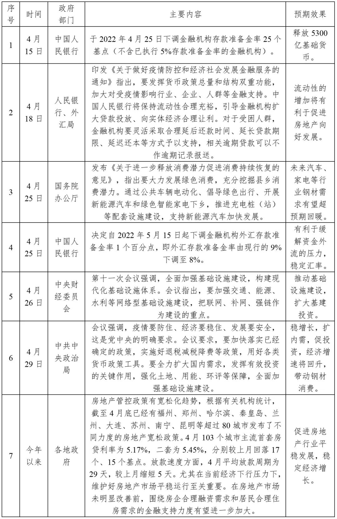 雖然3、4月份我國經(jīng)濟(jì)下行壓力加大,消費(fèi)、房地產(chǎn)、制造業(yè)等指標(biāo)數(shù)據(jù)下滑明顯。但是,近期一系列 穩(wěn)定經(jīng)濟(jì)增長政策的持續(xù)出臺(tái),將對(duì)未來經(jīng)濟(jì)和鋼材消費(fèi)提供重要的支撐和動(dòng)力。