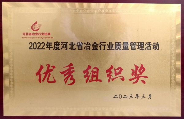 Recently, press conference on excellent achievements of quality management in metallurgical industry of Hebei Province was held in Shijiazhuang, nine achievements of quality management, such as “reducing the tonnage of scratched billet in small billet continuous casting machine at high drawing speed”, “eliminating the red rust on the surface of the first-line a steel wire”, “improving the passing rate of SWRCH35K series of wire” were awarded, including one first prize, four second prizes and four excellent prizes.