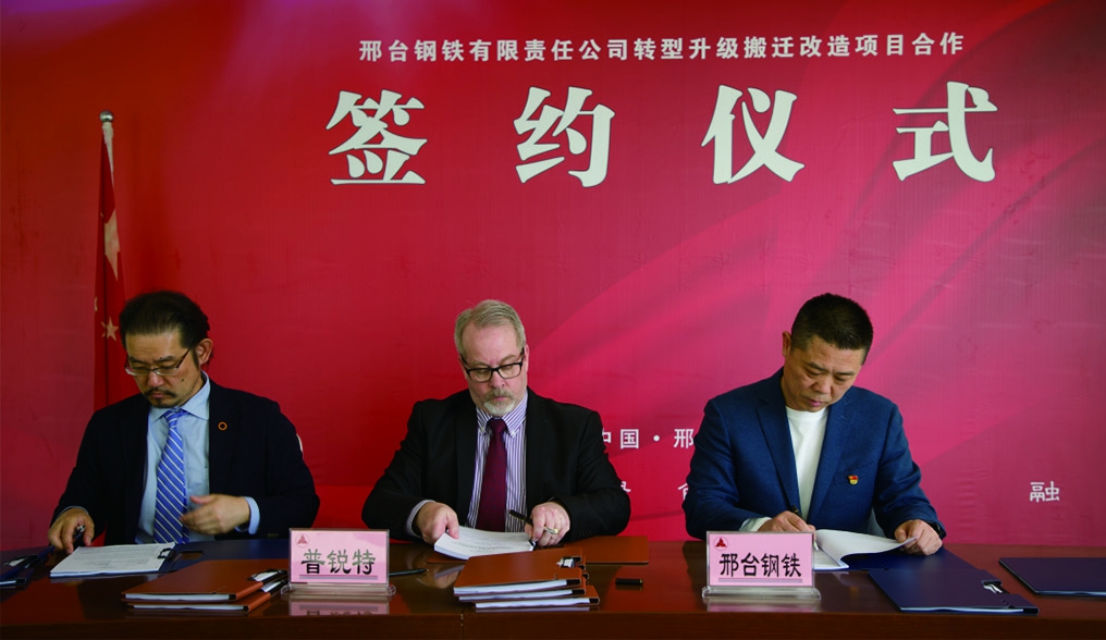 圖為普銳特冶金技術(shù)中國副總裁佐野洋一、普銳特冶金技術(shù)美國執(zhí)行COO Robert Lesage 與邢鋼董事長張育明簽訂軋機設備合同。 (普銳特冶金技術(shù))