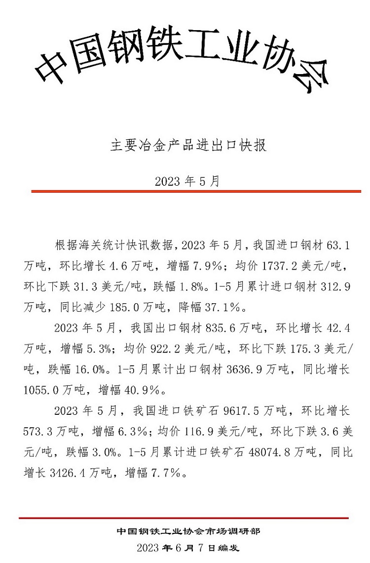 來源:中國鋼鐵工業(yè)協(xié)會 發(fā)布時間:2023年06月09日 點(diǎn)擊數(shù):