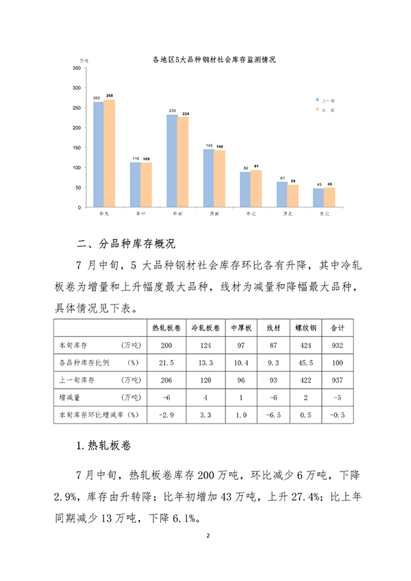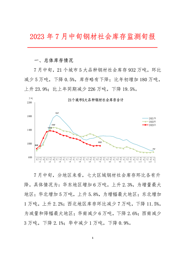 中鋼協(xié):7月中旬鋼材社會(huì)庫存932萬噸 環(huán)比下降0.5%