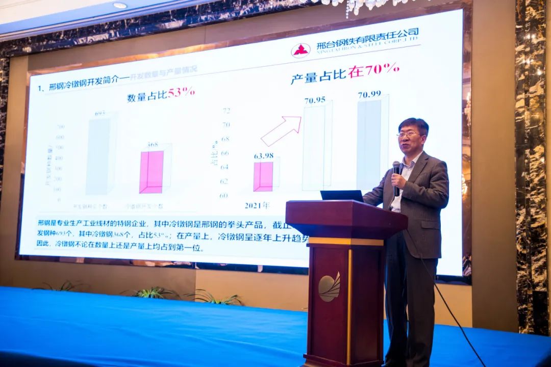 期間,邢鋼總經(jīng)理彭世丹作了《新規(guī)劃引領(lǐng)新未來(lái),新邢鋼再鑄新輝煌》報(bào)告,邢鋼董事長(zhǎng)助理、總工程師田新中作了《緊固件用鋼的開發(fā)和質(zhì)量控制技術(shù)》報(bào)告。浙江國(guó)檢檢測(cè)技術(shù)公司副總經(jīng)理王慧、晉億公司質(zhì)量技術(shù)部經(jīng)理張勇、中化創(chuàng)新研究院雙碳咨詢事業(yè)部總經(jīng)理劉通、上善院研發(fā)工程師楊現(xiàn)亮、南京工程學(xué)院教授趙秀明、上海納特汽車標(biāo)準(zhǔn)件公司研發(fā)總監(jiān)李軍正分別進(jìn)行了行業(yè)技術(shù)報(bào)告分享。