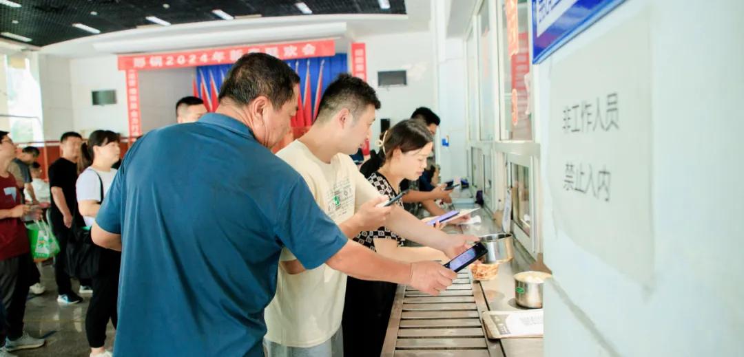 中午時(shí)分,邢臺(tái)鋼鐵有限責(zé)任公司職工食堂熙熙攘攘,熱鬧非凡??粗臃倍嗟娘埐?,準(zhǔn)備就餐的職工來回張望,滿臉洋溢著幸福感。