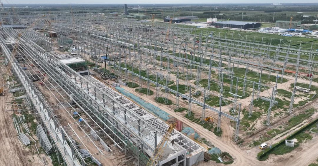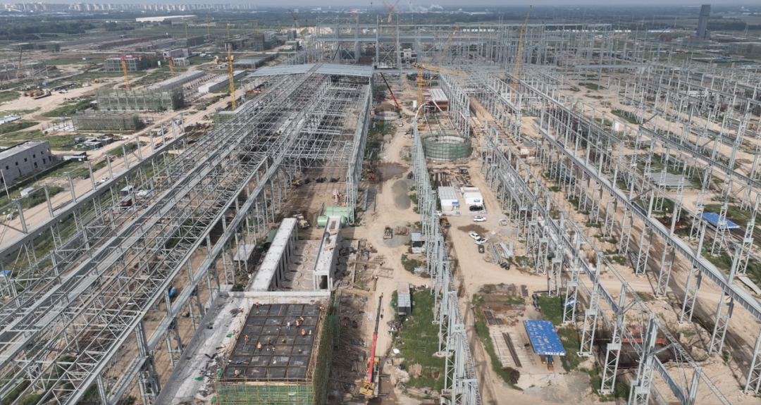 走在項(xiàng)目現(xiàn)場(chǎng),隨處可見(jiàn)矗立的鋼結(jié)構(gòu)和封頂?shù)慕ㄖ黧w。項(xiàng)目主要部分從西向東分別是煉鐵區(qū)域、煉鋼區(qū)域和軋鋼區(qū)域,項(xiàng)目鋼結(jié)構(gòu)工程已全面鋪開(kāi)。